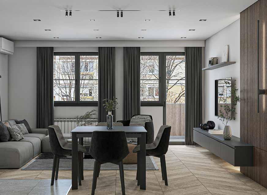 • Alu prozori i vrata sa termo prekidom u antracit boji i dvoslojno staklo