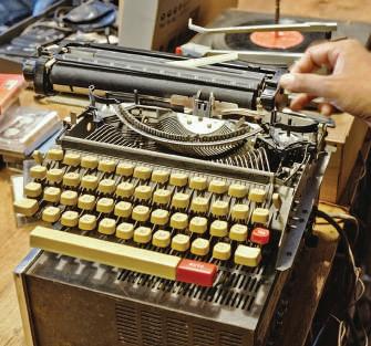 被拆开维修中的打字 机。Kamil用“best”来 形容上世纪的工艺:构造 精密、材料良好。