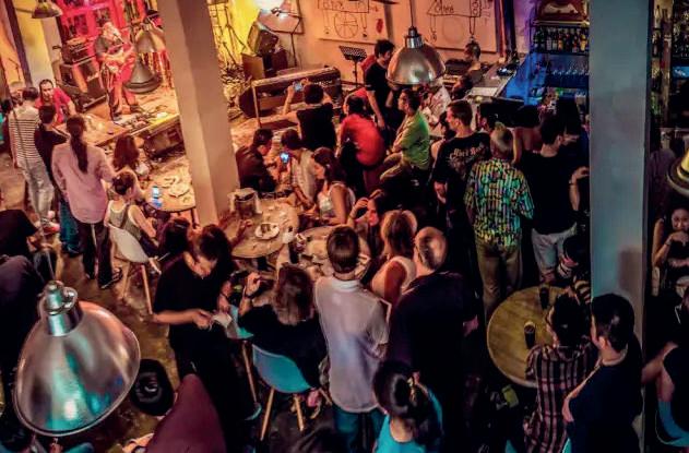 提供驻唱舞台的餐酒馆, 每个晚上都邀请不同音 乐类型的独立音乐人登 台驻唱,可容纳约80人。