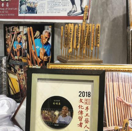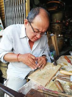 牌匾雕刻匠师。李德财来自木匠世家,祖上五代都 在中国从事雕刻、建庙工作。他7岁起和父亲学师, 从写字、雕刻到上漆保养,至今已有超过半个世纪 的木雕经验。和木材打了一辈子交道的他十分熟 悉木材的脾性,除了雕刻牌匾,他也是位古董木家 具修复师。