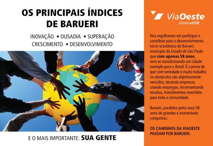 Dear Reader,The industrial growth of Ba rueri, allied to its excellent social and educational indexes, make the city a perfect place to work and live. The county has many qualities that, recog nized, are the synonym of expansion with quality of life.