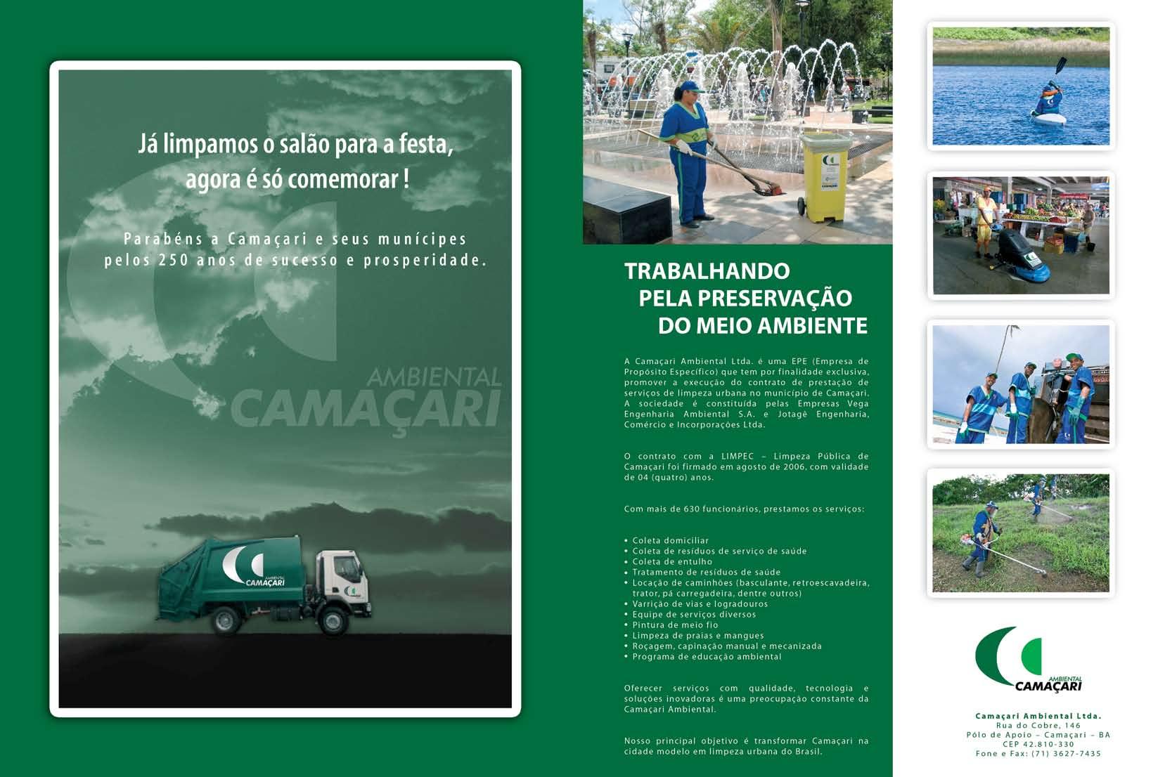 Tradução Inglês Fluency Tradução Espanhol José Carlos La Fuente F. Prada Projeto Gráfico / Arte Final Agência www.agenciabeco.com.brBeco Distribuição Empresa de Correios e Telégrafos DRT/SP TAM - Táxi aéreo - Vôos Executivos Agradecimentos À Prefeitura de Camaçari e suas secretarias. À Secretaria de Comunicação de Camaçari pelo apoio editorial. A todas as empresas que de alguma forma contribuíram para a realização deste projeto.