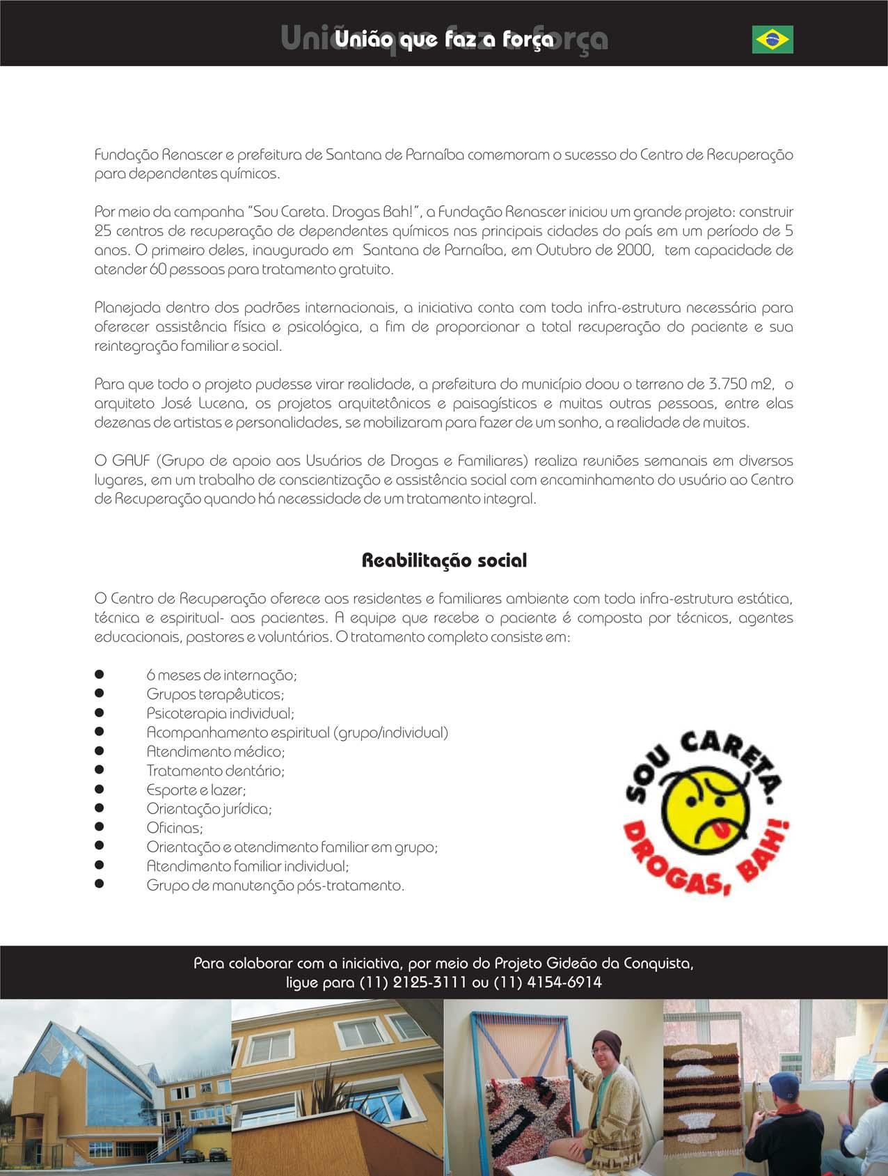 and Ofícios (POEAO), that Santana de Parnaíba by means of an accord firmed with the city of Ouro Preto, the Government of the State of the Espirito Santo, the SENAI and the Federacy of the Industries of Minas Gerais arrived (FIEMG). The project became famous for its preservacionista and social character, devoting itself as an excellent alternative for the conservation of historic sites. Beyond its cultural relevance, the project acts in the rescue of the citizenship, therefore all its team of restoratives is composed for devoid young, that gains stock market-aid, feeding and transportation voucher.