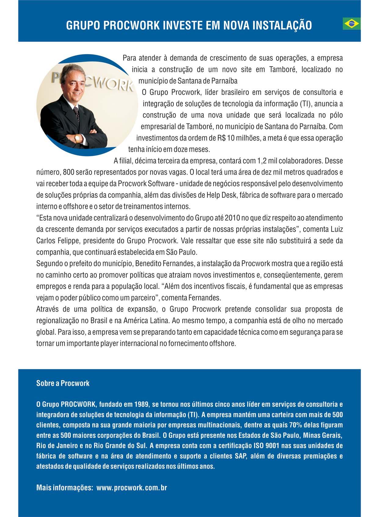 Trazemos também nesta edição comemorativa, uma entrevista exclusiva com Benedito Fernandes, atual prefeito do município e Silvinho Peccioli, seu antecessor, ambos responsáveis pelo grande aumento de qualidade de vida dos Então,munícipes.caroleitor, desejamos que sua leitura seja tão agradável quanto a graciosa Parnaíba.