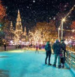 Der Wiener Eistraum verwandelt den Rathausplatz in ein Winterwunderland. Lassen Sie los und gleiten Sie schwerelos mit Schlittschuhen über glitzernde Eisflächen in Wien. (S.32)