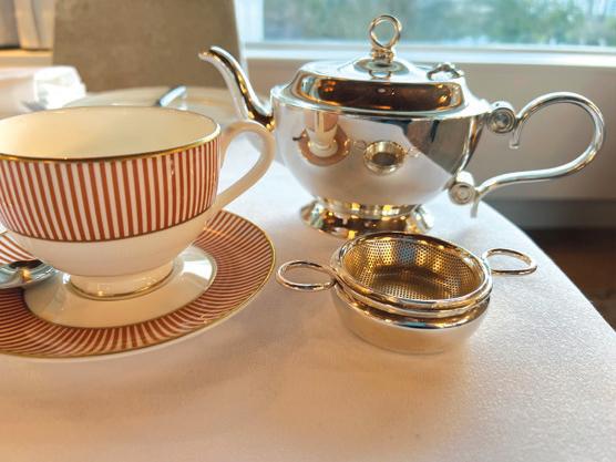 Tableware at The Marion is refined. Our teacups and plates featured thin white and red stripes and rims of gold.