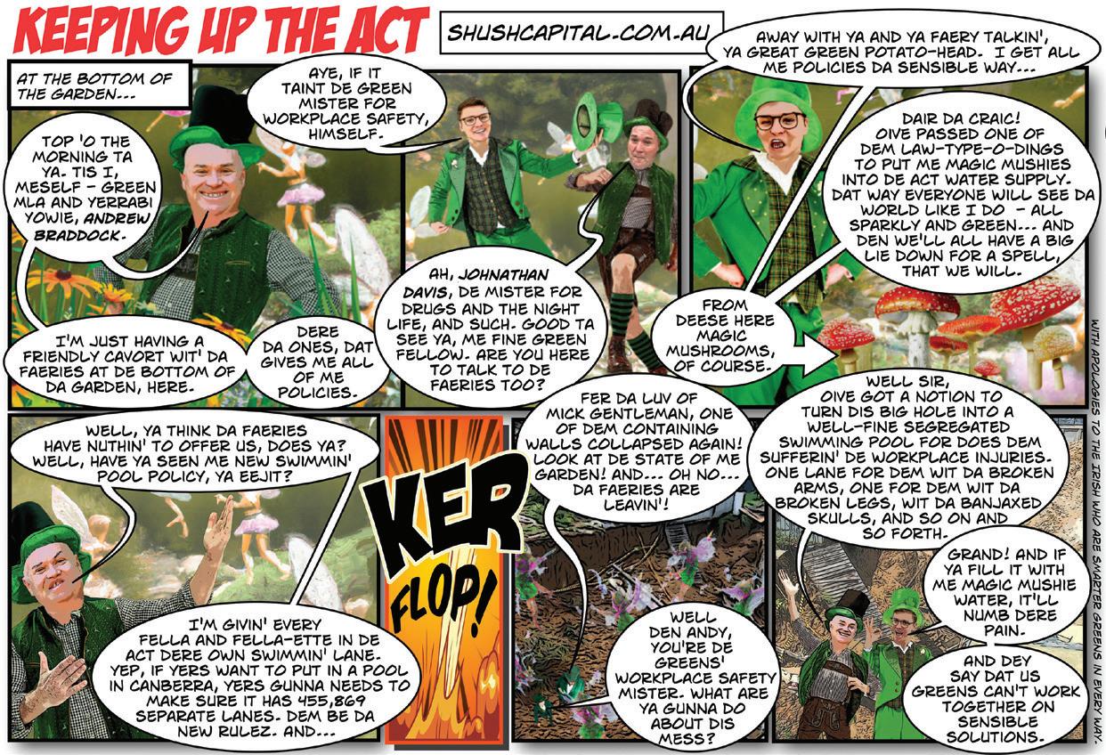 Call now to book (02) 6126 5000 Walk-ins welcome for X-Rays 62793 Braddon • Calvary Public Hospital MRI • Gungahlin • Kingston Macquarie • University of Canberra PET CT ulk Billing all Medicare Eligible CT, X-Ray, MRI and Nuclear Medicine Referrals. Gaps apply to Ultrasound W E A C CEP T AL L R EFE RRA L S Gap payments apply to Ultrasound, inter ventional procedures and some complex scans Damning reports, but the government just shrugs PAUL COSTIGAN Only a lunatic would buy to rent in the ACT! PAUL KAUFFMAN Can you pass the passionfruit test? JACKIE WARBURTON Bryce ALL ABOUT CHRISTINE COURTNEY shares a peep into the life of her famous husband KEEPING UP THE ACT joins the Greens at the bottom of the garden LIBERALS PUSH FOR REAL CHANCE AT GOVERNMENT MICHAEL MOORE looks at the mid-term performance of the Legislative Assembly New bridge for the tram over troubled water IAN MEIKLE