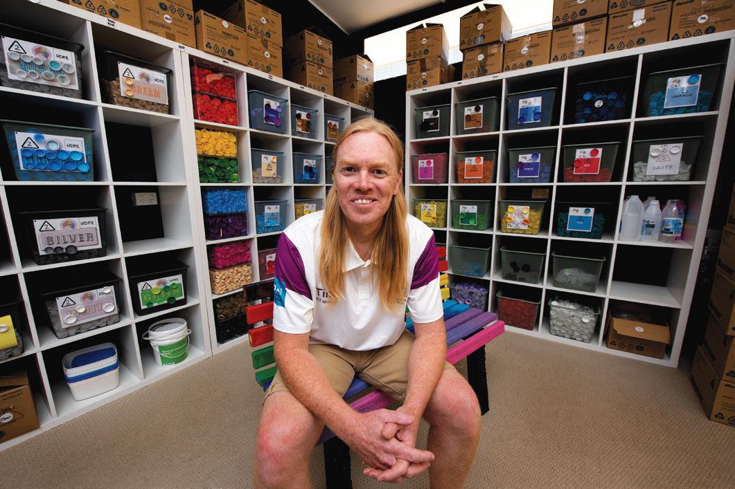 Tim says Lids4Kids wants to show schools in particular, and workplaces, that once 15,000 lids are collected, that equals one bench.