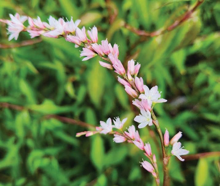 Vietnamese mint… delicate pink flowers and lime-green foliage with light purple markings in the summer. Photos: Jackie Warburton