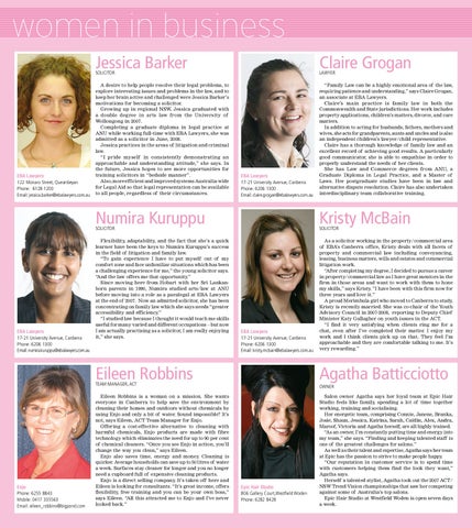 EBA Lawyers 17-21 University Avenue, Canberra Phone: 6206 1300 Email: kristy.mcbain@ebalawyers.com.au