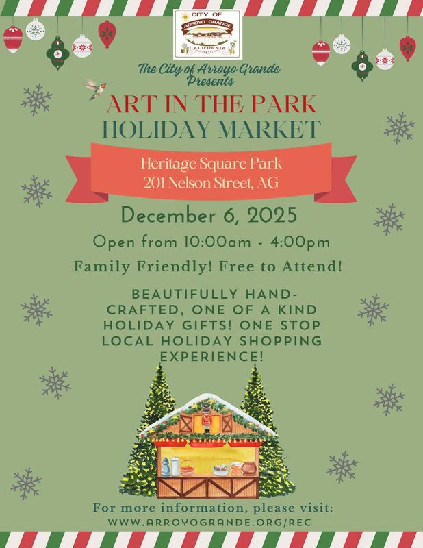 Descubra tesoros únicos y artesanales en el Mercado Navideño Art in the Park el sábado 6 de diciembre, de 10:00 a 16:00 h, en Heritage Square Park Explore una increíble selección de regalos locales: desde joyería, ropa, velas y productos para el cuidado de la piel hasta plantas, libros, creaciones de crochet y delicias dulces y saladas Celebre la temporada, apoye a los artistas locales y encuentre algo especial para todos en su lista ¡The Vintage Renegades ofrecerán una actuación acústica en vivo de 12:00 p. m. a 2:00 p. m. en el quiosco de música!