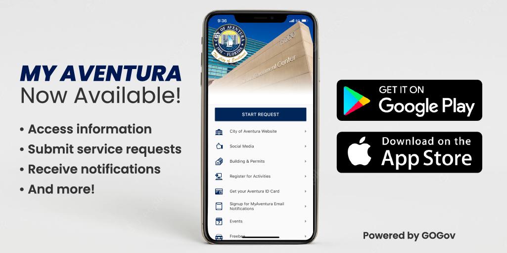 Drive Aventura, FL 33180 Stay informed with MyAventura! Receive City of Aventura notifications about news, events, emergencies, and Commission Meeting agendas directly to your inbox. Visit MY Subscribe to Aventura