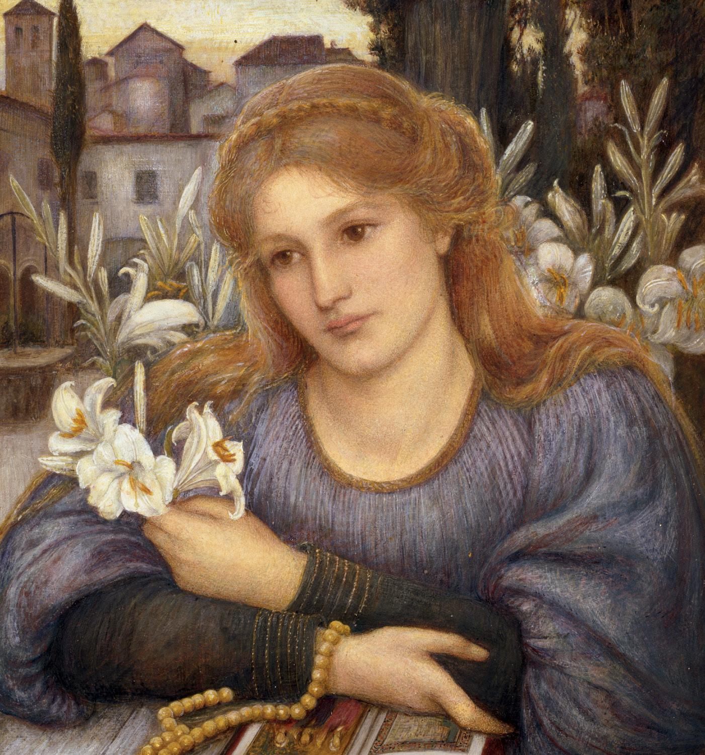 Detail from WA1965.89 Marie Spartali Stillman, ‘Cloister Lilies’ Image © Ashmolean Museum, University of Oxford.