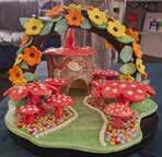 Mushroom Garden in Springtime Ceramic (paper clay), glazes, resin flowers