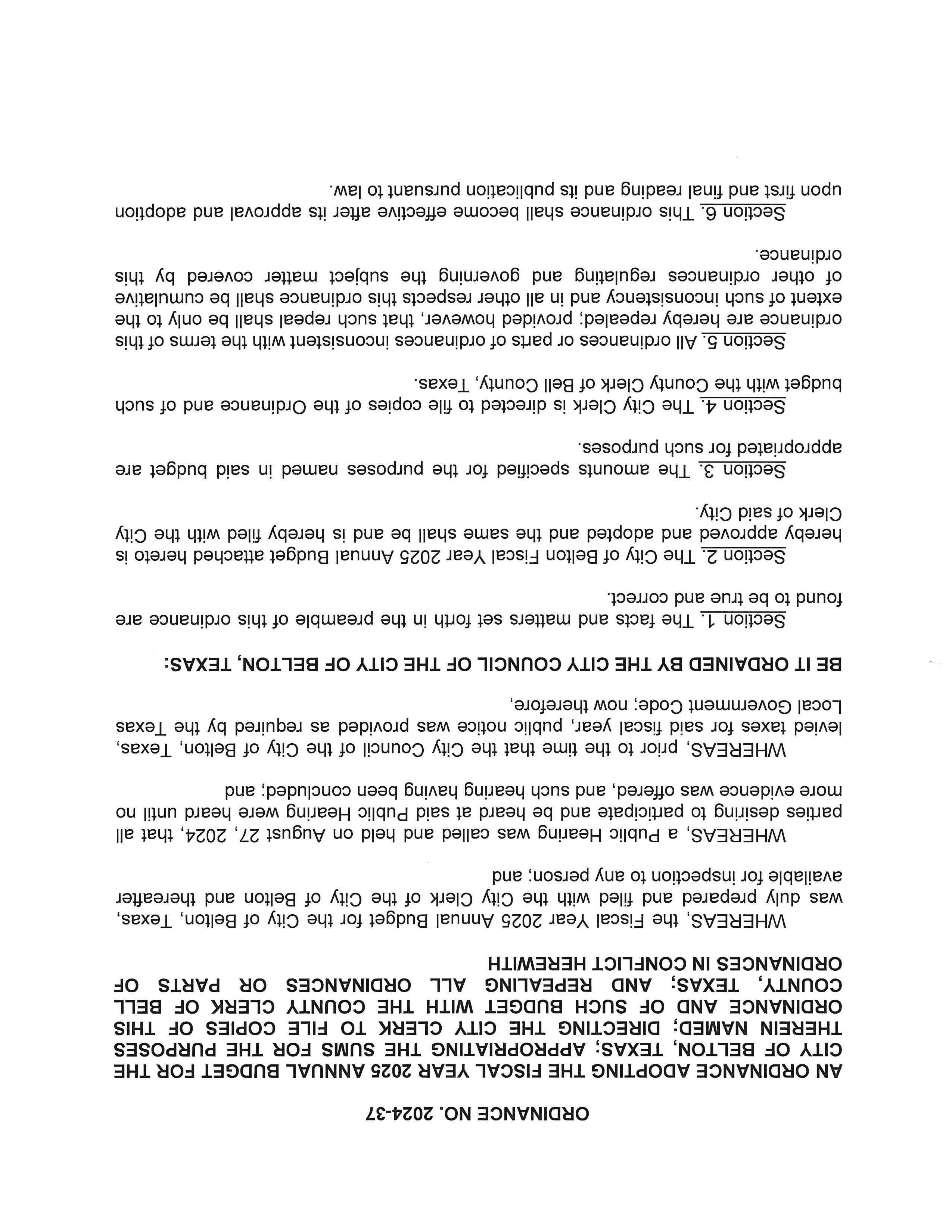 TO THE HONORABLE MAYOR, CITY COUNCIL, AND CITIZENS OF BELTON: