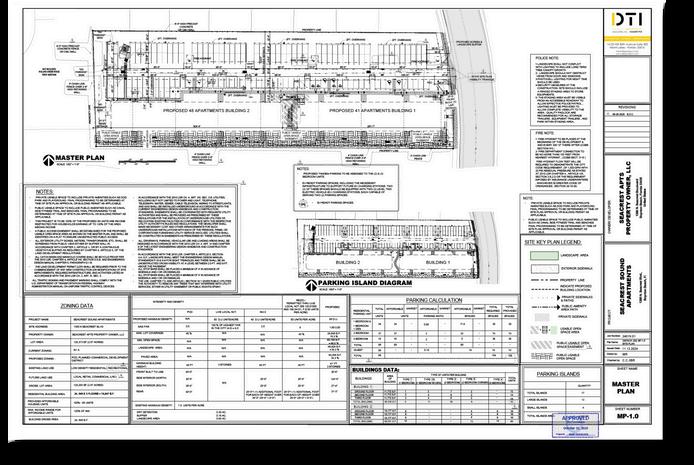 Unique Features: The Seacrest Sound Apartments project is a 89-unit, threestory multifamily community developed under the Live Local Act, offering 100% income-restricted housing. The 2.97-acre site includes residential buildings, a public linear park along the canal, 155 parking spaces, and sustainable design elements. It features a landscape buffer, enhanced streetscape, and CPTEDbased lighting and security features.