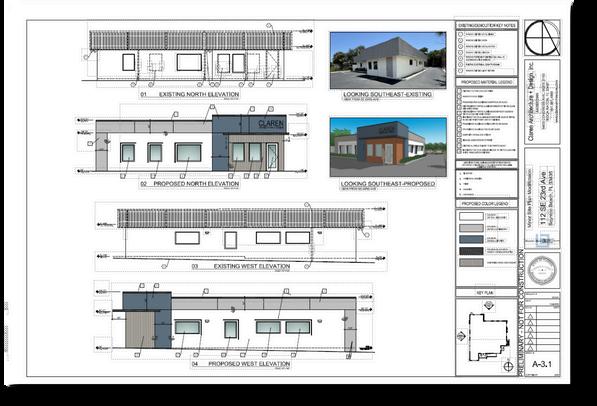 Unique Features: This project depicts façade renovation of an existing building, including the installation of new impact-rated aluminum door and windows; addition of architectural features; construction of a new metal canopy structure; repainting and finishes. No modifications are proposed to the site plan or to the building footprint.