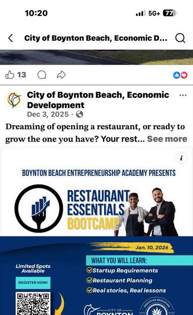 Public outreach for the City of Boynton Beach Comprehensive Plan update was conducted on October 20 and November 13, 2025. The update includes revisions to all Comprehensive Plan elements, including the development of a new Economic Development element