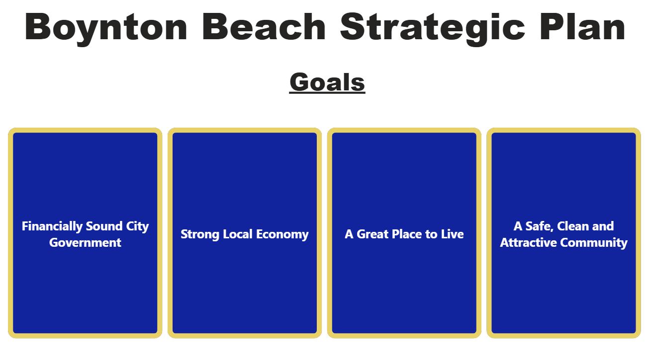 • The Boynton Beach Strategic Plan defines the City’s policy direction and guides how we deliver on the Mayor and Commission’s vision for the future.