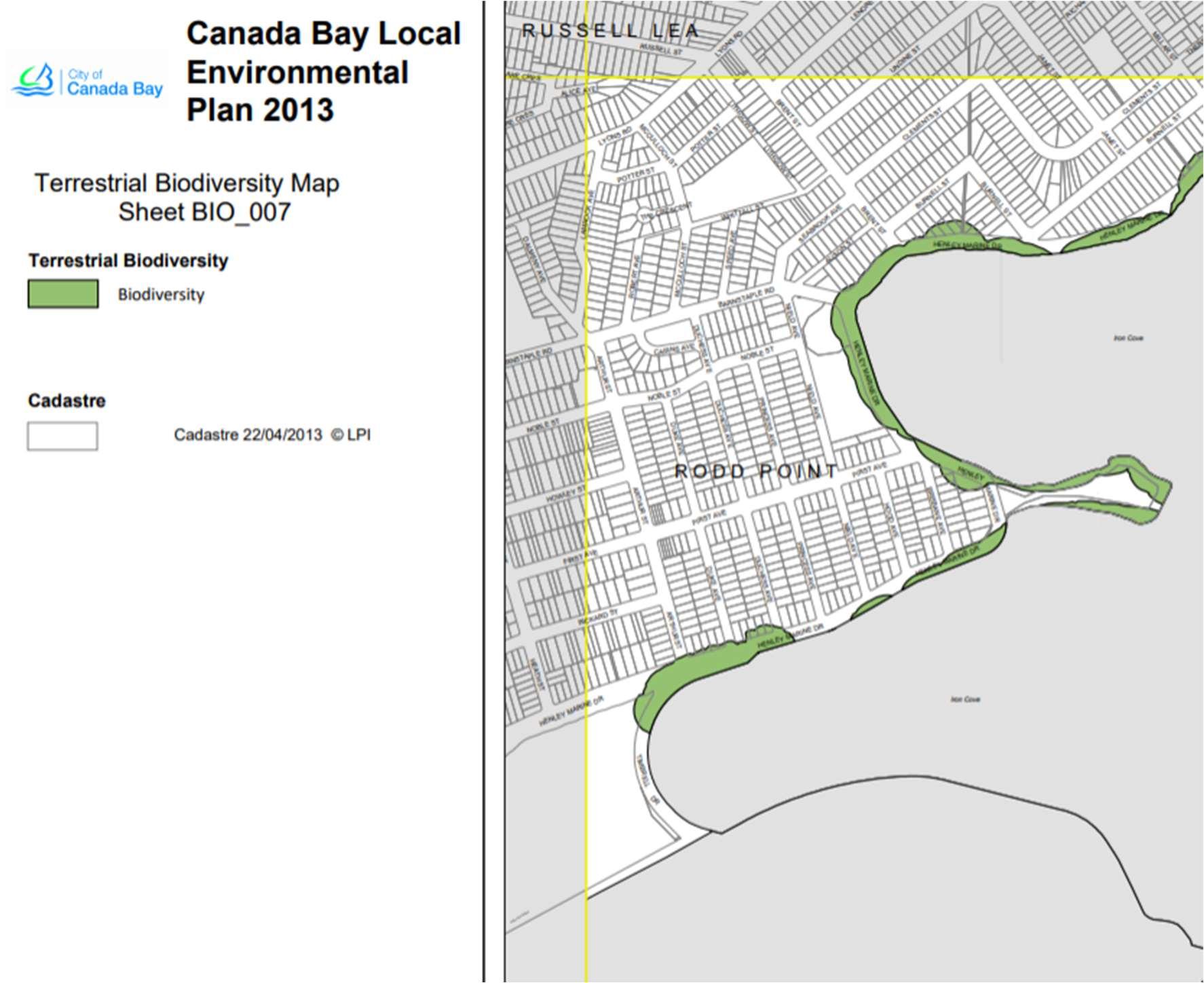 The Biodiversity Framework identified the Iron Cove to Rodd Point to Timbrell Park toIron Cove Creek/Canal as one of the six highest priority habitat connectivity opportunities in City of Canada Bay.