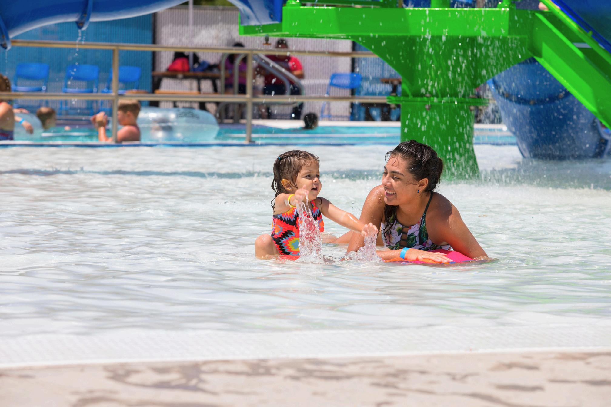 pad has a small play structure for the smaller swimmers and is a nice area for parents to relax in the water while keeping an eye on their kids. The lazy river is probably our most popular attraction. We have also had some improvements in the pump room so guests can expect the water to be crystal clear and in perfect condition to get out of the summer heat.