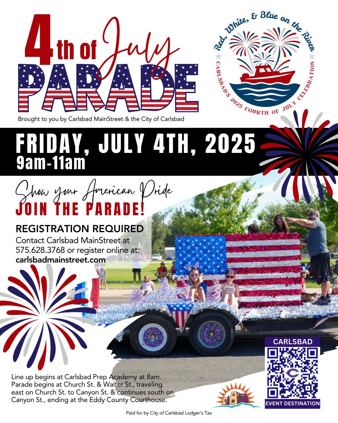 Welcome to the July Edition of the City of Carlsbad Newsletter! Summer is here, and Carlsbad is celebrating in a big way. This month’s issue features details on our annual Red, White, and Blue on the River celebration, an all-day 4th of July event full of food, music, and fireworks along the Pecos River.