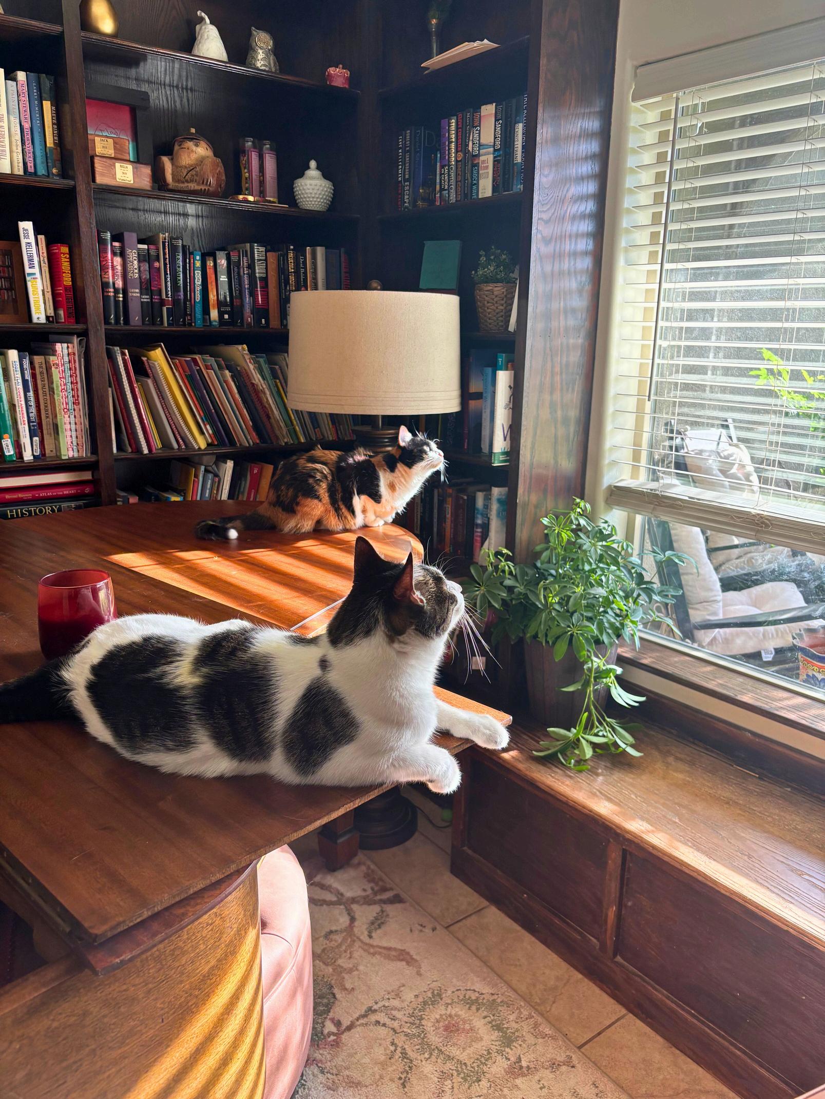 We are big Ohio State Buckeye fans, so the dogs are named after the Buckeyes. Cardi is short for Cardinal, the state bird Both are Red Dobermans, scarlet and grey, just like the team colors They’re my loyal protectors, but also loving Just don’t mess with Mom