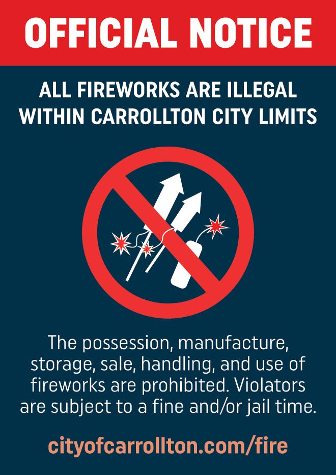 Celebrate Independence Day with a spectacular fireworks display. Bring the family and join the City of Carrollton for an evening of patriotic fun as the show lights up the night sky with an awe-inspiring display of color. This free display will begin after sunset at approximately 9:30 p.m. and will last 15 minutes. There will be no event on-site.