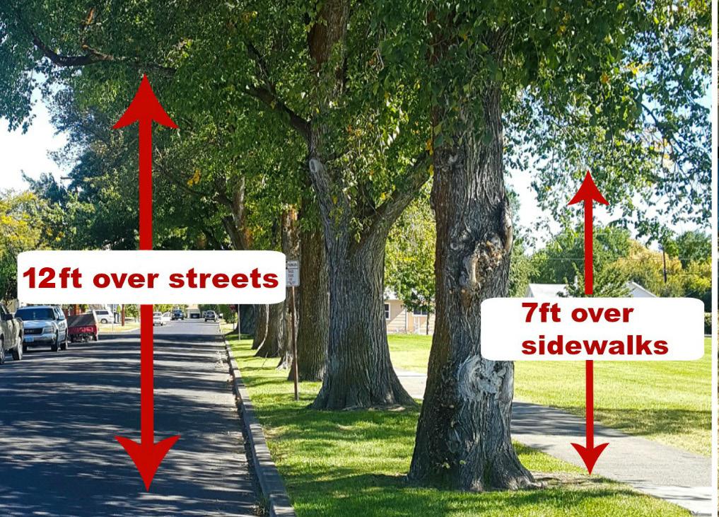 • Tree/brush limbs must have a clearance of 12 feet above and one foot back from the street or alleyway