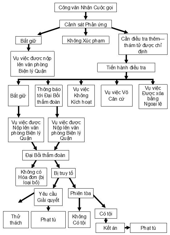 Một tội ác đã được báo cáo và sĩ quan đã tiế n hành bắt giữ. Chuyện gì xảy ra tiếp theo?