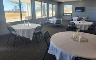 This modern event space sits beside the pond at Ellis Golf Course and is available year-round. Inside seating accommodates up to 120 guests, with an outdoor patio that adds space for another 40. It’s a beautiful setting for celebrations and gatherings of all types. Call 319-286-5091 to learn more.