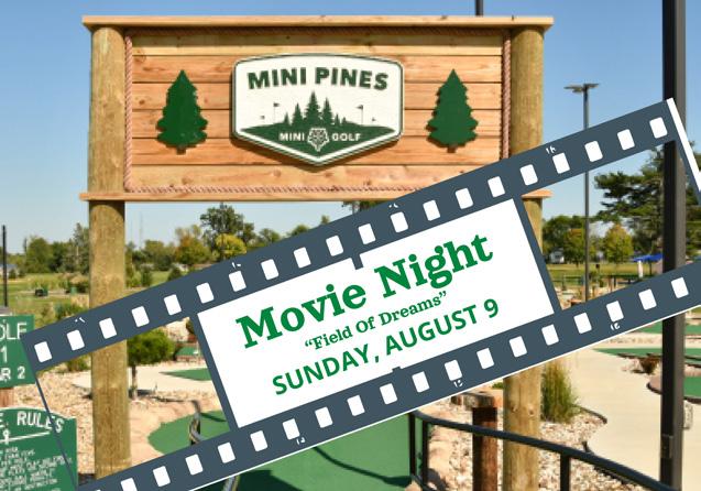 The golf cart drive-in movie night is back at Mini Pines! Watch from a golf cart, or bring your own blanket or chair. Registration includes one round of mini golf before the movie and free popcorn. Drinks and snacks available for purchase. Golf carts available for the first 40 registered. Advance registration required.