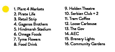 Importantly, the map supports the development of a cohesive narrative for Hindmarsh as an attractive cultural hub that is ‘open for business’ and teeming with life. This initiative is explored in greater detail in the following pages.