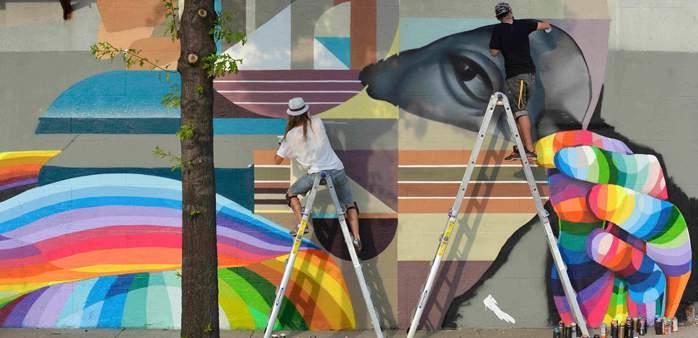 > Integrate major sporting events with street-level amenity such as team colour bunting, signage, murals, etc.