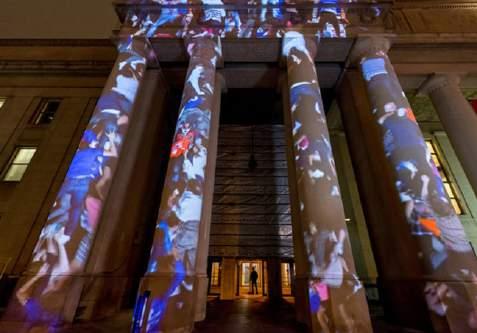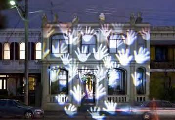 > Activate the Port Road footpath adjacent to the Bandstand with a series of projections from or upon the Old Fire Station building (Peter Scragg & Associates).