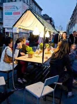 > Install temporary tables and chairs for passive recreation and to trial a dining al-fresco option in conjunction with other nearby "festival" activities.