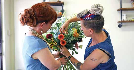 The West End Flower School teaches a mix of workshops at 19 on Green, here, Emma assists a student to create a colourful bouquet they will take home. Photo Credit – Abbey Fisher