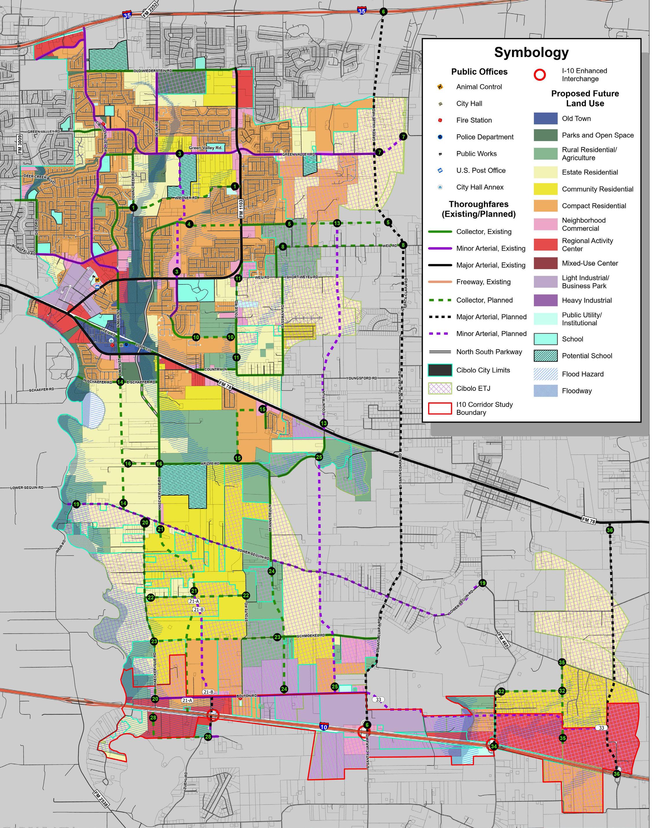 A comprehensive plan functions as a strategic road map guiding the city’s development over the next 20 years. This detailed document reflects the community’s vision, goals, and policies, providing a valuable resource for city officials in their decision-making processes related to development and redevelopment. A comprehensive plan includes holistic recommendations for land use, transportation, housing, and infrastructure. It is important to note that while the Comprehensive Plan articulates the community’s vision for the future, it does not establish zoning regulations or zoning district boundaries. Implementing this plan signifies Cibolo’s commitment to responsible growth. Typically, a comprehensive plan is updated every 5 years.