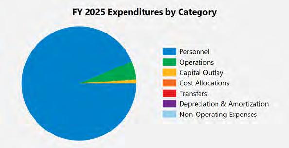 The City’s required contribution levels to the North Carolina Local Government Employees Retirement System will increase again in FY 2025. The contribution rate for general employees is now 13.6%, while the rate for law enforcement officers is 15.1%. By State mandate, the City contributes 5% to 401(k) accounts for sworn law enforcement officers. This year, the City will complete a 3-year commitment by increasing the 401(k) contribution by 0.5% once again to bring the total 401(k) contribution for non-sworn coworkers to 5%. This contribution increase is effective on July 1, 2024. This budget includes funding for 3 additional full-time staff positions and 8 position reclassifications for FY 2025. Start dates are noted below. A total of 1,222 full-time and 42 part-time positions are recommended for funding.