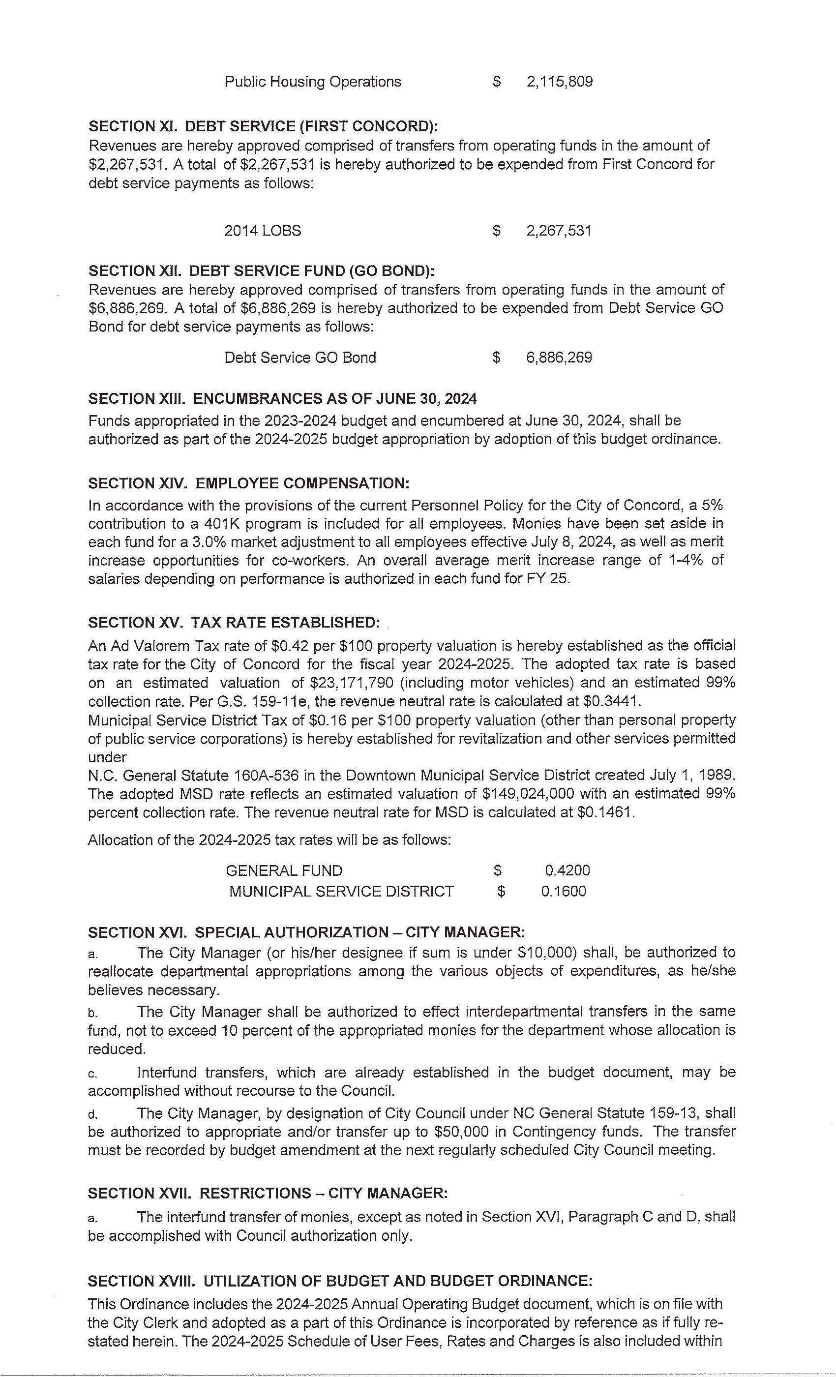 bond projects that Concord residents voted to approve in November 2022. Work is well underway on the renovation of Dorton Park, with an expected reopening date of Fall 2024. The initial round of bonds was issued in September 2023 and the first set of debt service payments will begin with the FY 2025 budget. In the coming year, staff will continue to focus on the initial phase of bond projects, while also: