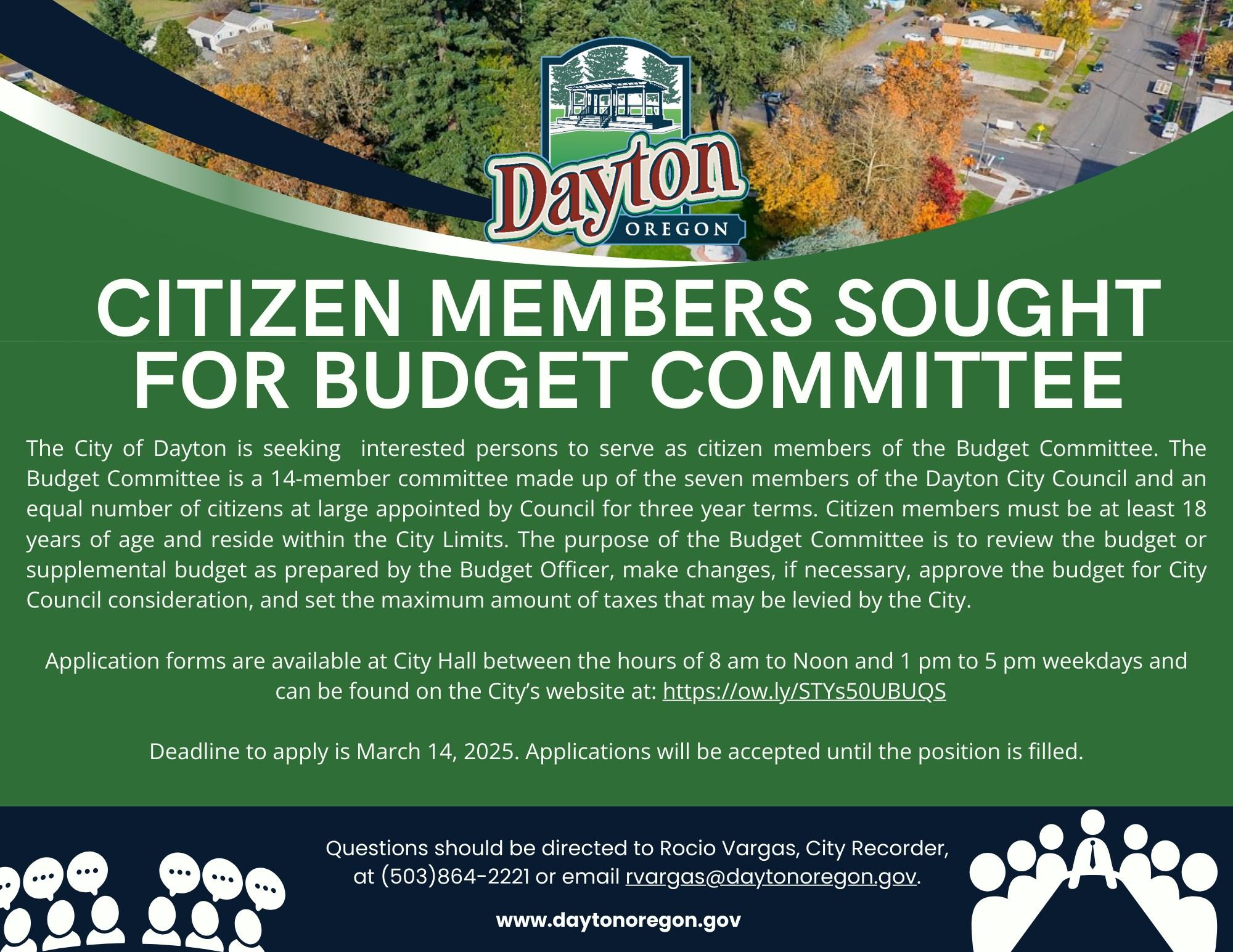 Budget Season & Committee Vacancies. One of my top priorities is launching the fiscal year 2025-2026 budget process. Budget Committee meetings are scheduled for May, and we currently have vacancies on the committee. If you’re interested in shaping the city’s financial future and influencing funding for key programs, consider applying! This is a great way to get involved in local government and contribute to the decision-making process. Feel free to reach out to me for more information.