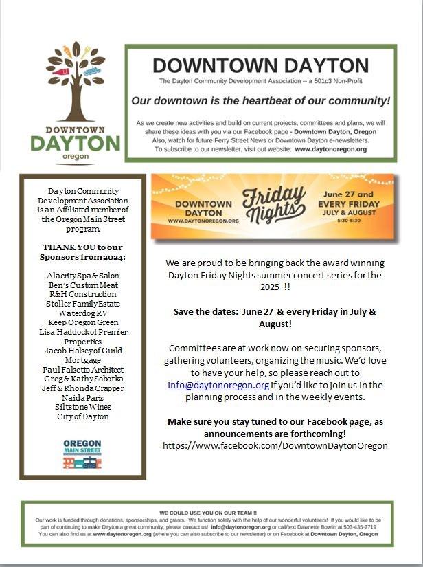 As always if you have any questions or concerns, please contact me dcutler@daytonoregon.gov.
