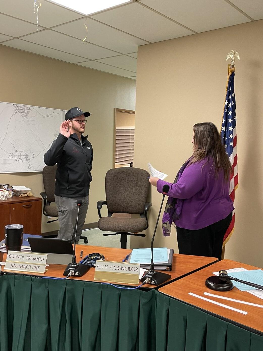Luke Wildhaber, Rosalba Sandoval-Perez, and Jim Maguire are sworn in as Dayton City Councilors.