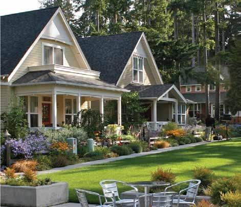• Housing types like cottage clusters surrounded by shared open space allow for community gathering spaces and allow for alternative routes to homeownership.