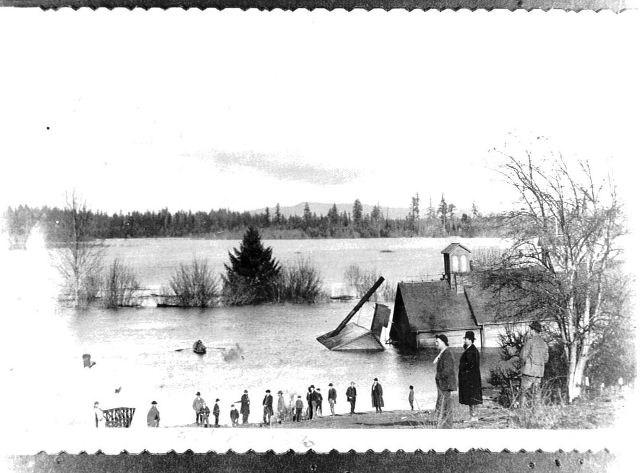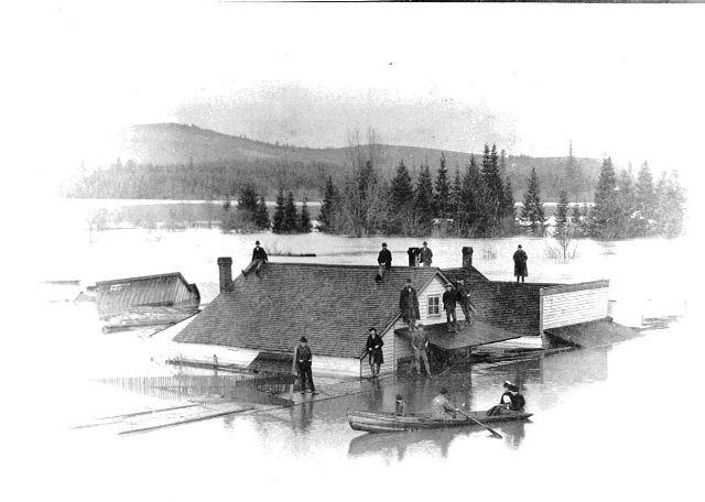 Rain, rain, rain in Feb 1890; bad news: a huge flood deluged the entire valley. Rossner’s Saloon was on Ferry St between 1st & 2nd. Powell’s Warehouse was on the riverbank, close to the bridge.