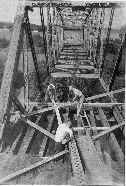 Dismantling the Ferry St Bridge in 1958. Photo by permission of News-Register, McMinnville , OR