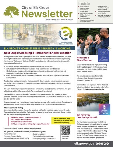 A permanent shelter supports Elk Grove’s ongoing commitment to provide compassionate, effective solutions for those experiencing homelessness, a top priority for our community. Learn more and sign up for updates on this project at elkgrove.gov/longtermshelter