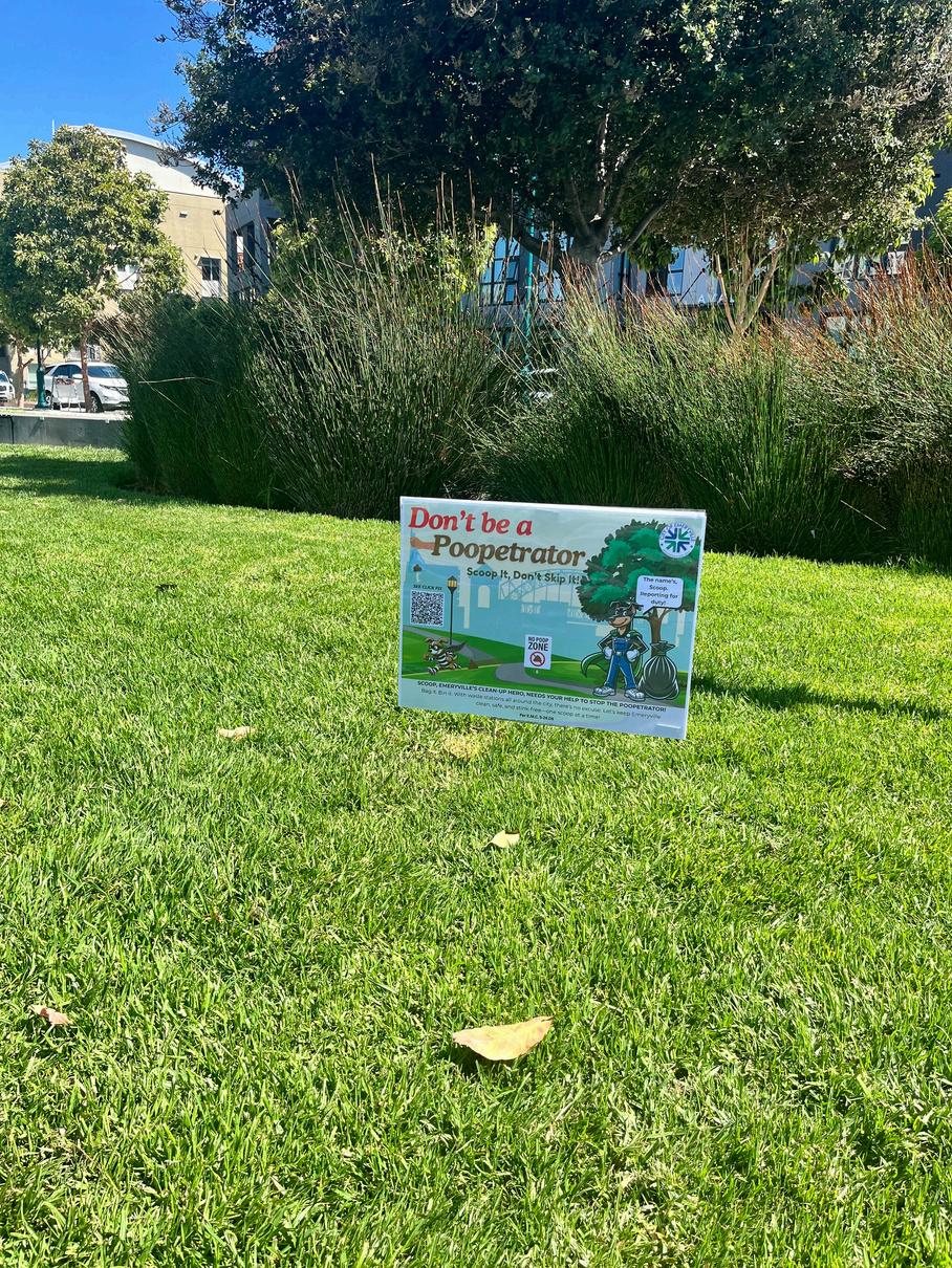 This summer, the Park Ambassador team played a vital role in keeping Emeryville’s parks welcoming, safe, and enjoyable for the community Ambassadors provided weekend coverage at the busiest park sites, supported rental groups, monitored usage, and helped ensure parks stayed litter-free and wellmaintained. Their presence strengthened communication between park visitors and City staff, which allowed for quick reporting of maintenance needs and safety concerns Ambassadors also assisted with the rollout of the new “Poopetrator” signage campaign, which reminded park users to pick up after their pets The fun and eye-catching signs were placed throughout Emeryville parks and supported the community goal of keeping parks clean and inviting for everyone. Through these combined efforts, residents and visitors enjoyed clean, family-friendly park environments all season long The program not only supported park operations but also fostered a stronger sense of community stewardship.