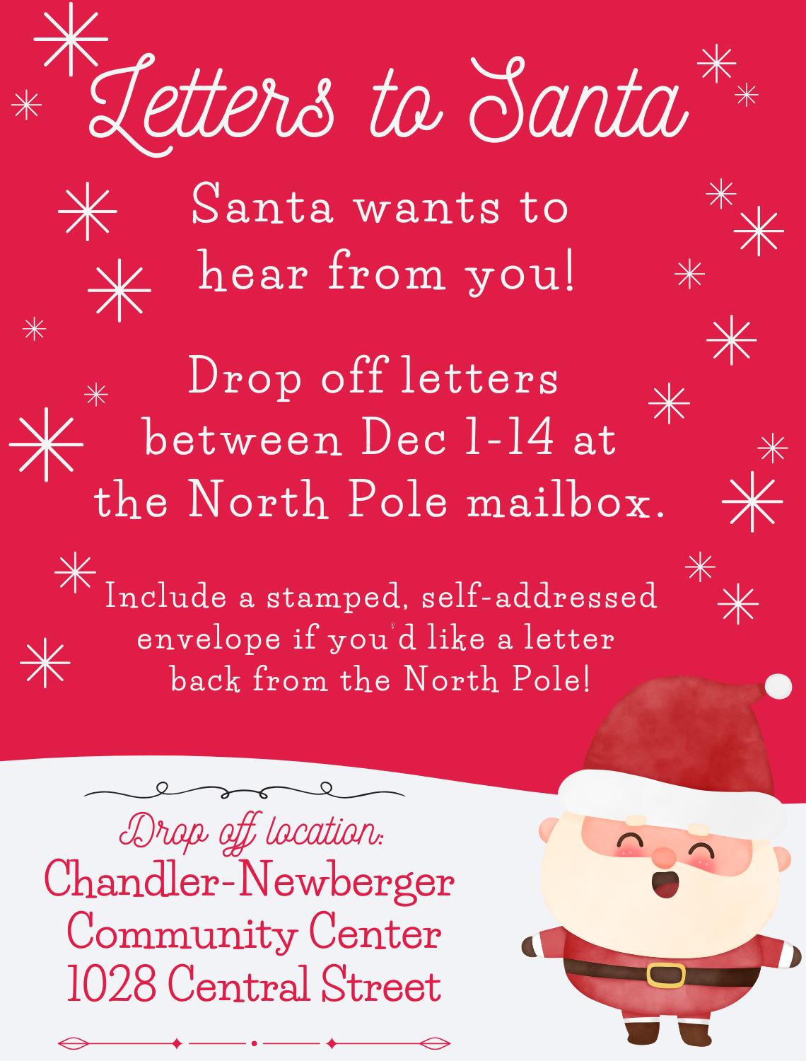 Evanston Parks & Recreation is working with the North Pole this holiday season to help deliver your letters to Santa. Children of all ages, start writing your letters to Santa! Drop off letters in the North Pole mailbox at the Chandler-Newberger Center. If you’d like to receive a letter from the North Pole, include a stamped, self-addressed envelope.