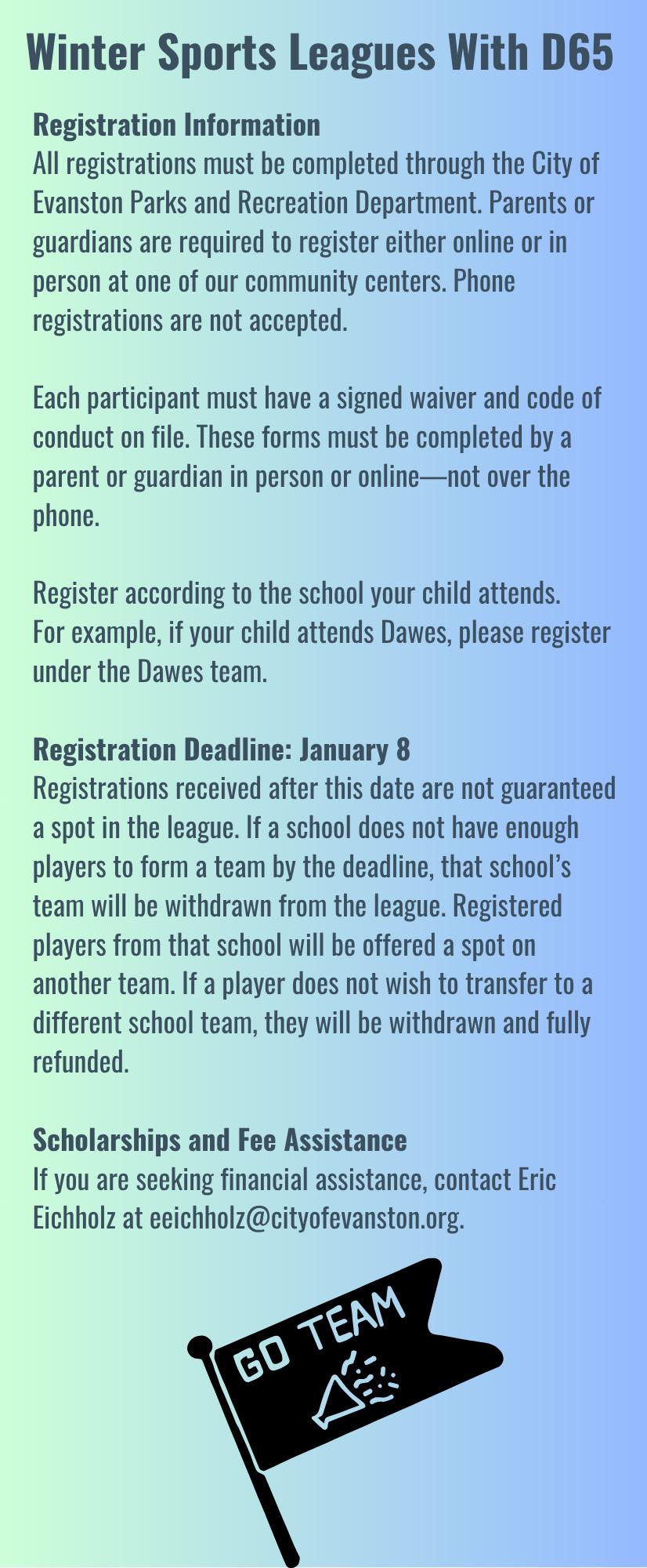 Questions? Contact Recreation@cityofevanston.org or 847-448-4311.